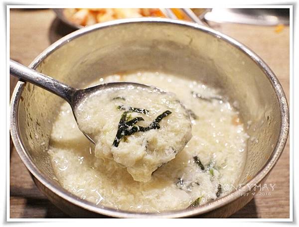海鮮塔吃完後,就是煮雜炊的時間,蛋液下鍋還有海苔