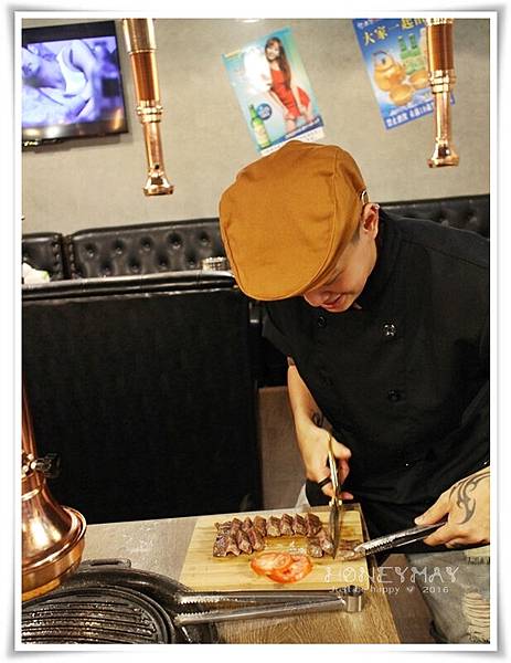 兑換的牛小排經由服務生的巧手,烤得透紅透紅,超嫩超好吃