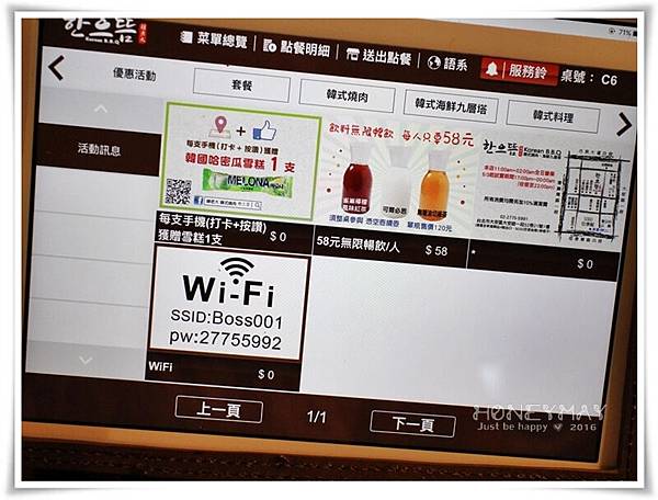 這裡的MENU是平版,圖文並茂,點餐也都自己來