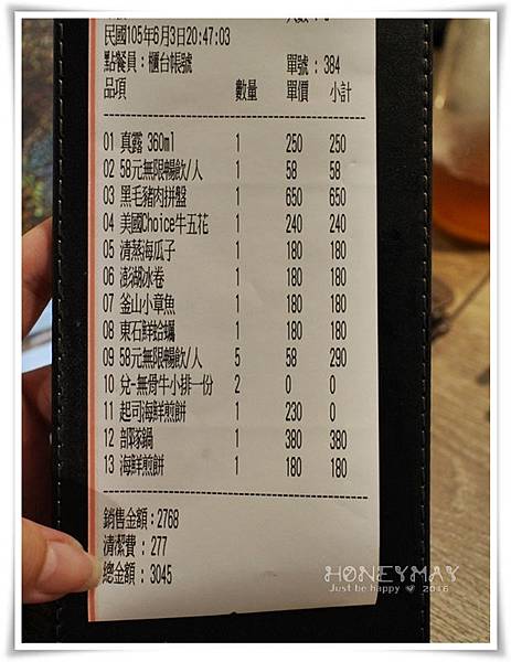 我們一行6個人結帳NTD3045,結帳後平版就會顯示感謝您的蒞臨