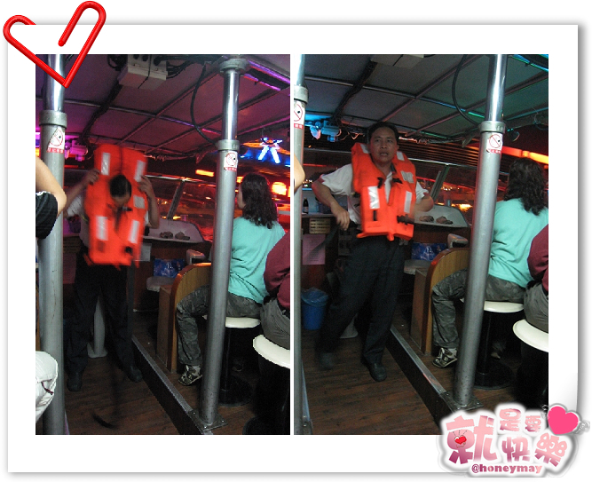 ▲解說員~示範救身衣穿法~還會說『你們不用穿~看我就好』^^
