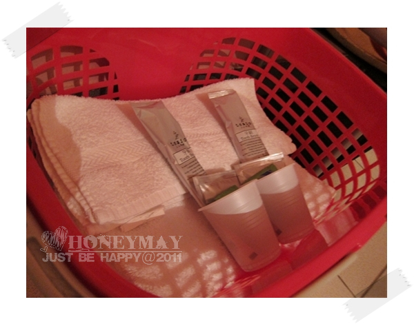 ▲盥洗用品提供大、小毛巾各一 及 牙刷膏組、沐浴用品
