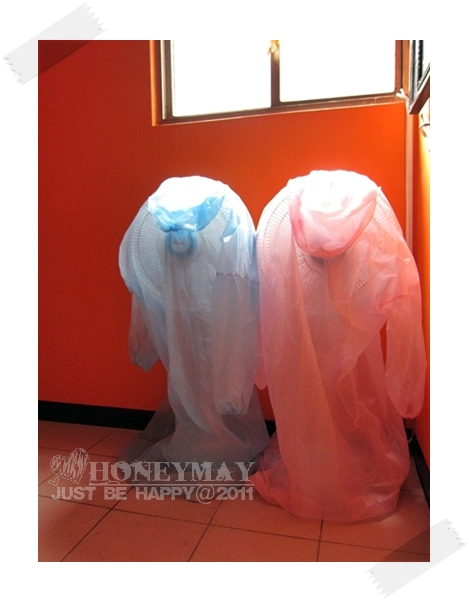 ▲接著要到頂樓看VIEW的時候~發現穿著雨衣的電風扇情侶檔~可愛斃了! 哈哈~