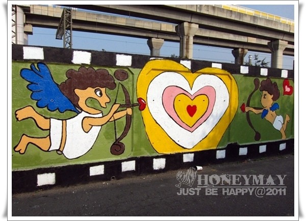 嗯!? 橋頭有彩繪牆@@? 哇攏嘸哉捏!? 於是決定繞過糖廠~先來覓尋彩繪牆好了!!